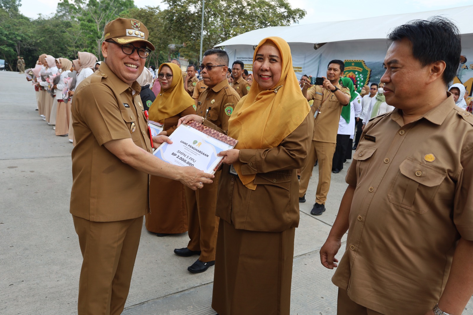 Dalam kesempatan ini Pj. Bupati PPU, Makmur Marbun didampingi istrinya, Linda Romauli Siregar juga menyerahkan sejumlah penghargaan kepada pemenang lomba tingkat nasional di lingkungan Dinas Pendidikan pemuda dan olahraga (Disdikpora) PPU.