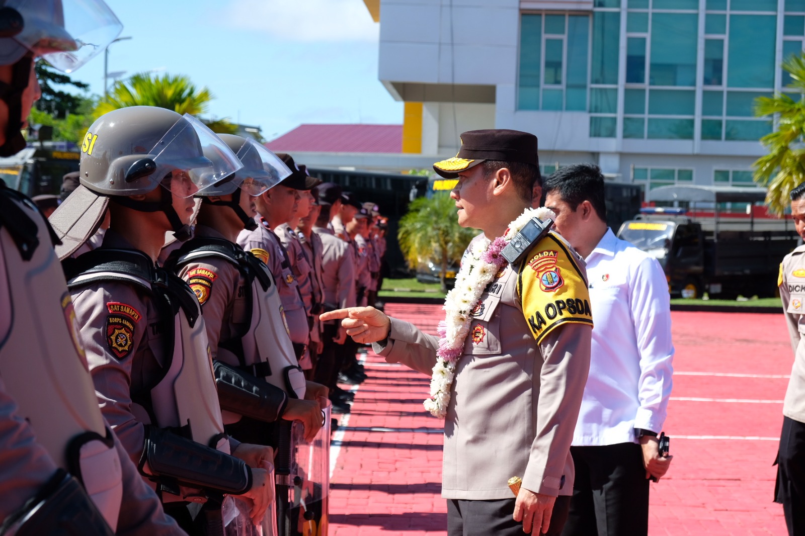 Turut mendampingi Kapolda Kaltara ialah Karoops Polda Kaltara Kombes Pol Prasodjo Wibowo, Dirintelkam Kombes Pol Sigit Ari Widodo, Dirreskrimum Kombes Pol Taufik Herdiansyah Zeinardi, Dirsamapta Kombes Pol Joko Heri Purwono, Kabidpropam Krishadi Permadi, Kabid TIK Kombes Pol Budhi Rochmat.