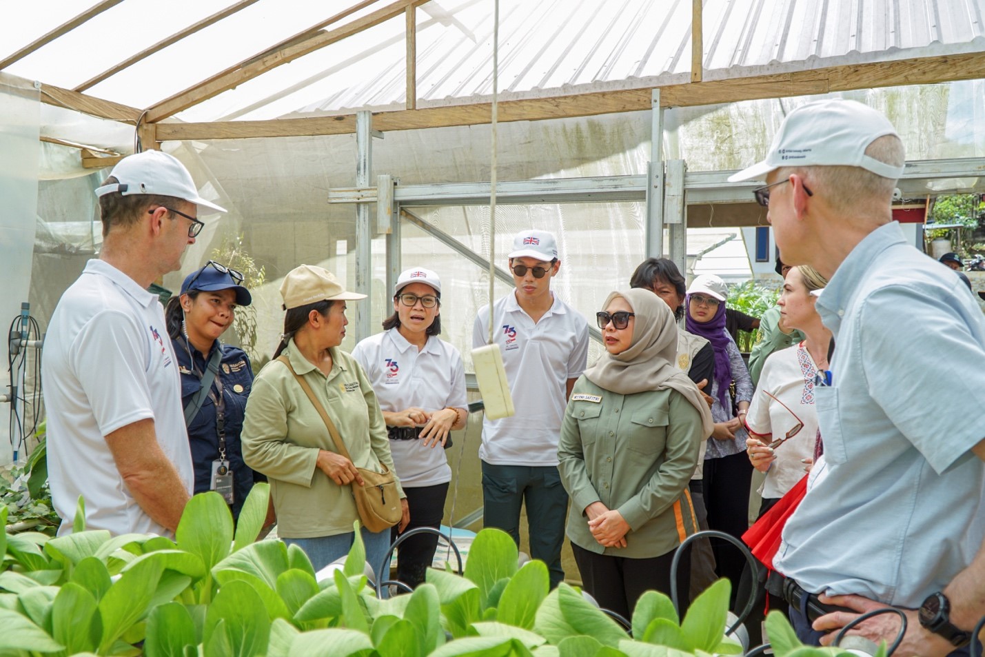 Kunjungan pertamanya adalah melihat penerapan urban farming hidroponik di salah satu greenhouse.