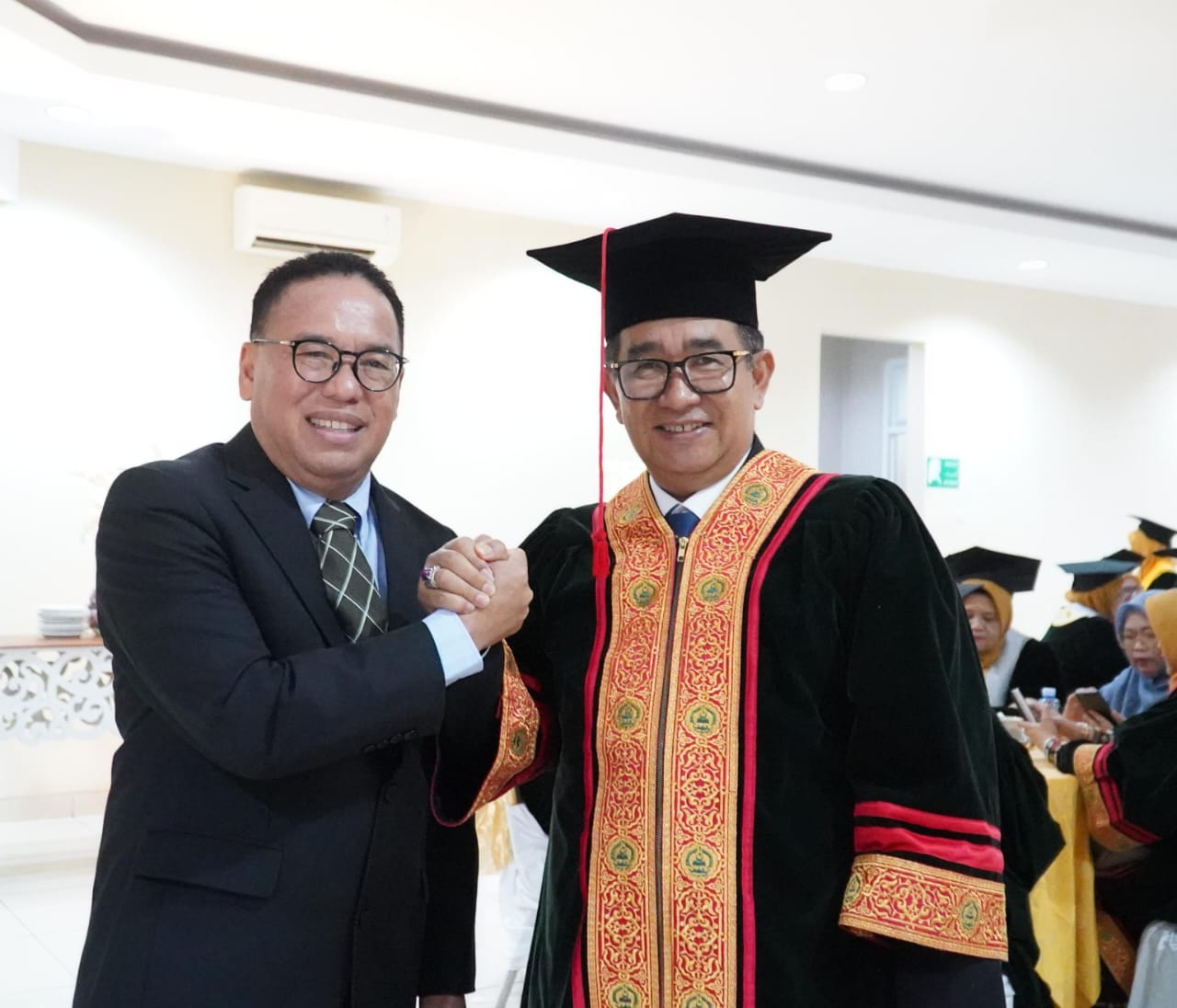 “Alhamdulillah seluruh prosesi pengukuhan Profesor Kehormatan untuk saya hari ini berjalan lancar,” bangga Akmal usai pengukuhan.