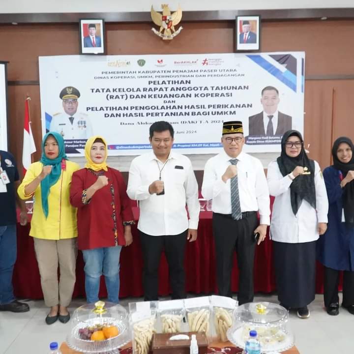 TITIKNOL.ID,PENAJAM – Dinas Koperasi, UMKM, Perindustrian dan Perdagangan (DisKUKMPerindag) Penajam Paser Utara (PPU), menggelar pelatihan Tata Kelola Rapat Anggota Tahunan dan Keuangan Koperasi dan Pelatihan Pengolahan Hasil Perikanan dan Hasil Pertanian bagi UMKM.