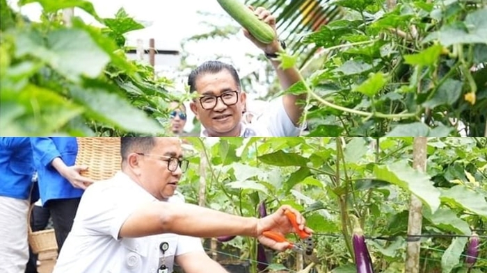 Dalam kesempatannya, Pj Gubernur Kaltim, Akmal Malik juga memanen tomat, terong dan cabai, serta menanam bibit pohon Durian Musang King di plot percontohan tanaman organik Politani Samarinda.