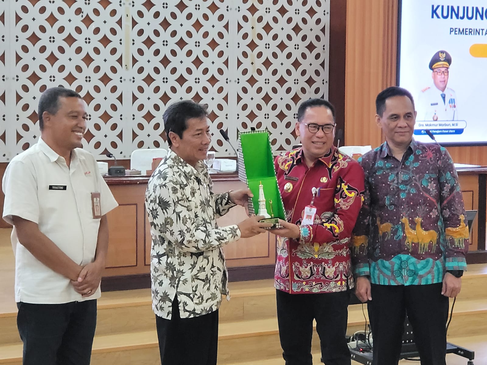 Pj Bupati PPU Makmur Marbun saat menerima cinderama dari Pj Walikota Yogyakarta, Sugeng Purwanto. TITIKNOL.ID/HO