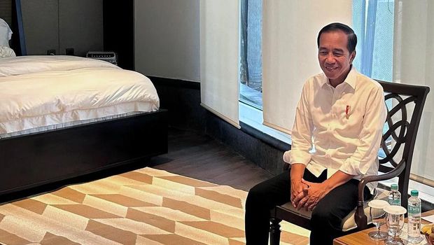 Jokowi tampak duduk di sebuah kursi.