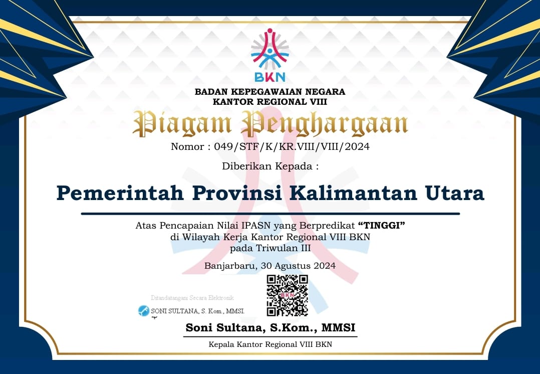 Dengan penghargaan ini, Kaltara menunjukkan kemampuannya bersaing di kategori “Tinggi” di lingkungan Kanreg VIII BKN.