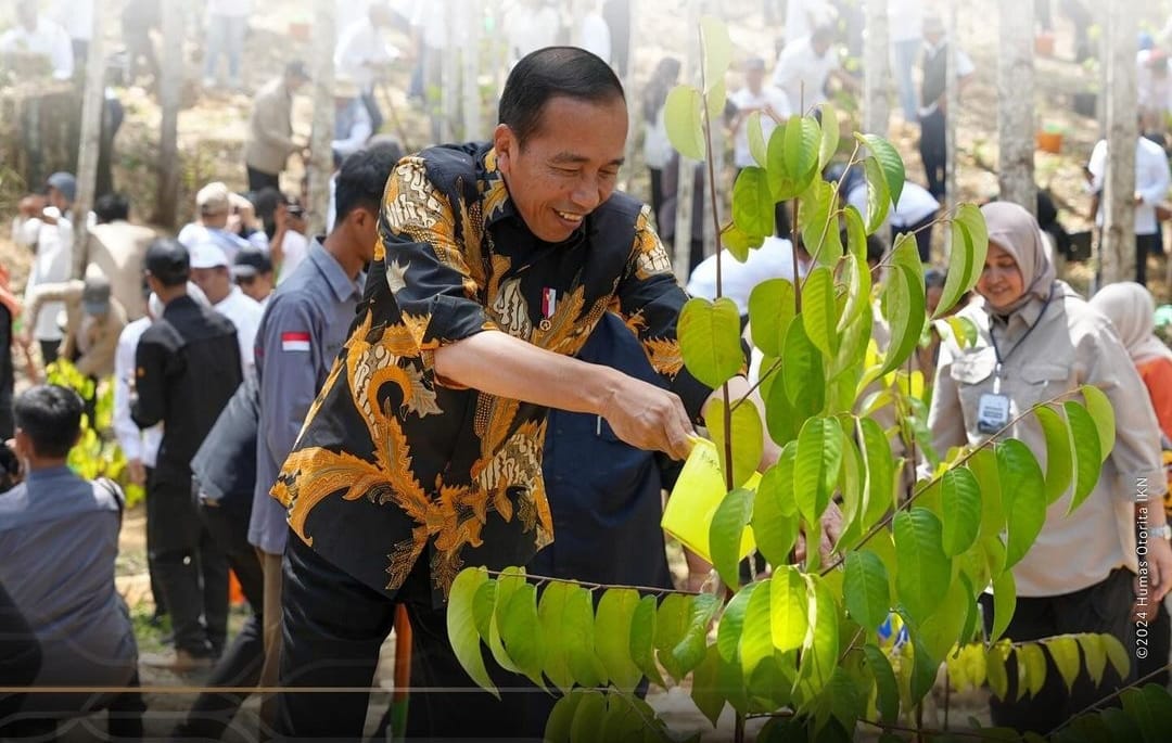 PROYEK INVESTOR ASING - Ilustrasi Presiden Jokowi menanam pohon di Ibu Kota Nusantara, Kalimantan Timur. Presiden Jokowi akan groundbreaking proyek di IKN, 20 September 2024. Kegiatan ini bisa dikatakan groundbreaking proyek investor asing pertama di Ibu Kota Nusantara atau IKN Nusantara, Kalimantan Timur.