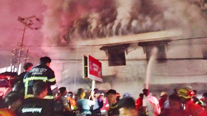 Api diduga menyambar dari lantai 1 menyebar membakar toko bangunan berisi mayoritas cat, dan bahan bangunan tersebut menyebar hingga ke lantai 2.