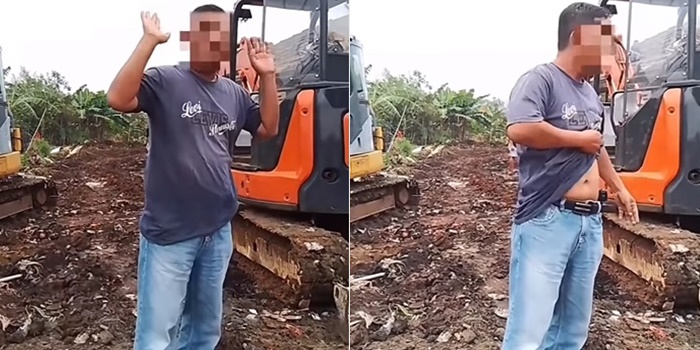 Pria tersebut juga memamerkan benda diduga senpi yang tersimpan di pinggangnya.