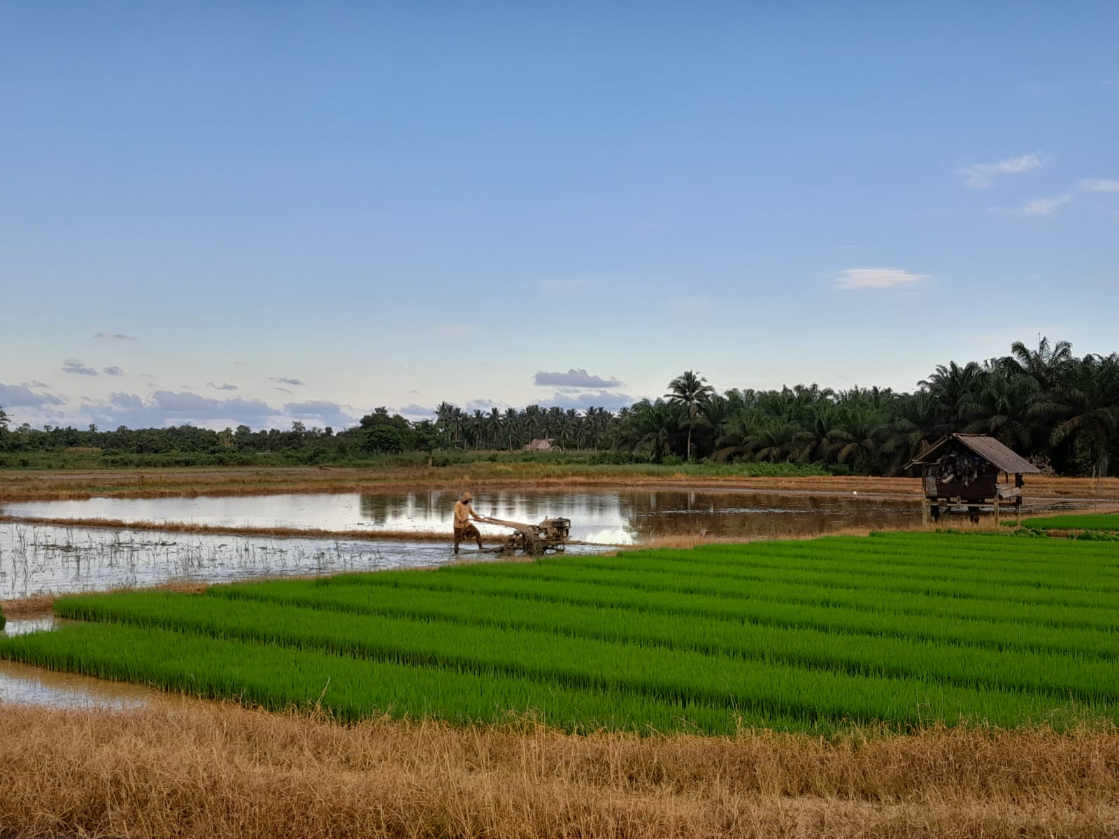 Masyarakat melakukan traktor lahan untuk persiapan musim tanam.