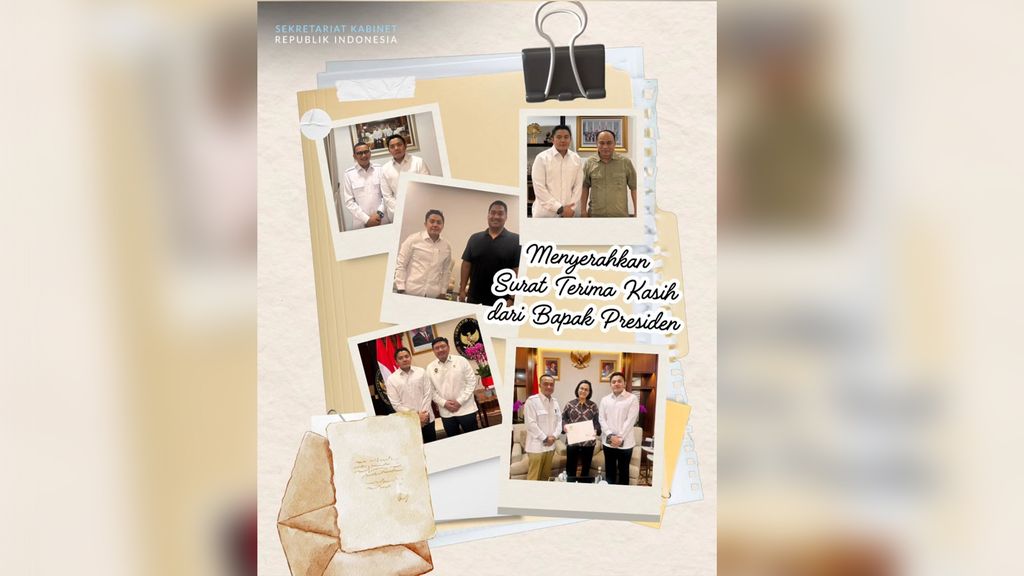 ‎“Berjumpa dengan lima menteri Kabinet Merah Putih yang telah menyelesaikan tugas. Pertemuan ini menjadi kesempatan untuk bersilaturahmi sekaligus menyerahkan surat khusus dari Presiden Prabowo Subianto,” tulis akun Instagram resmi Sekretariat Kabinet, dikutip Senin (15/9/2025).