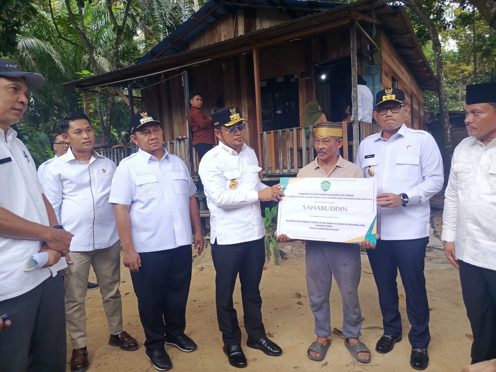 “30 tahun sejak saya membangun rumah panggung dari kayu, pemerintah akhirnya turun tangan memberikan bantuan rehabilitasi rumah,” ujar Sahabudin saat Gubernur Kaltim, Rudy Mas’ud dan Bupati PPU, Mudyat Noor melakukan tinjauan bedah rumah di kediamannya, Rabu (17/9/2025).