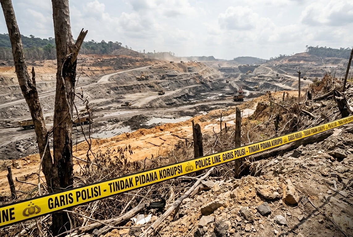 Foto ilustrasi pertambangan merusak lingkungan, kini diusut, dibawa ke ranah hukum. (Gemini Ai)